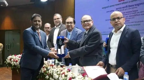 শেরপুর সদর প্রতিনিধি : ময়মনসিংহ বিভাগের ২০২৪–২৫ অর্থবছরে ‘শ্রেষ্ঠ জেলা প্রশাসক’ হিসেবে সম্মাননা অর্জন করেছেন শেরপুরের জেলা প্রশাসক ও জেলা ম্যাজিস্ট্রেট তরফদার মাহমুদুর রহমান। ভূমি মন্ত্রণালয়ের উদ্যোগে প্রদত্ত এই